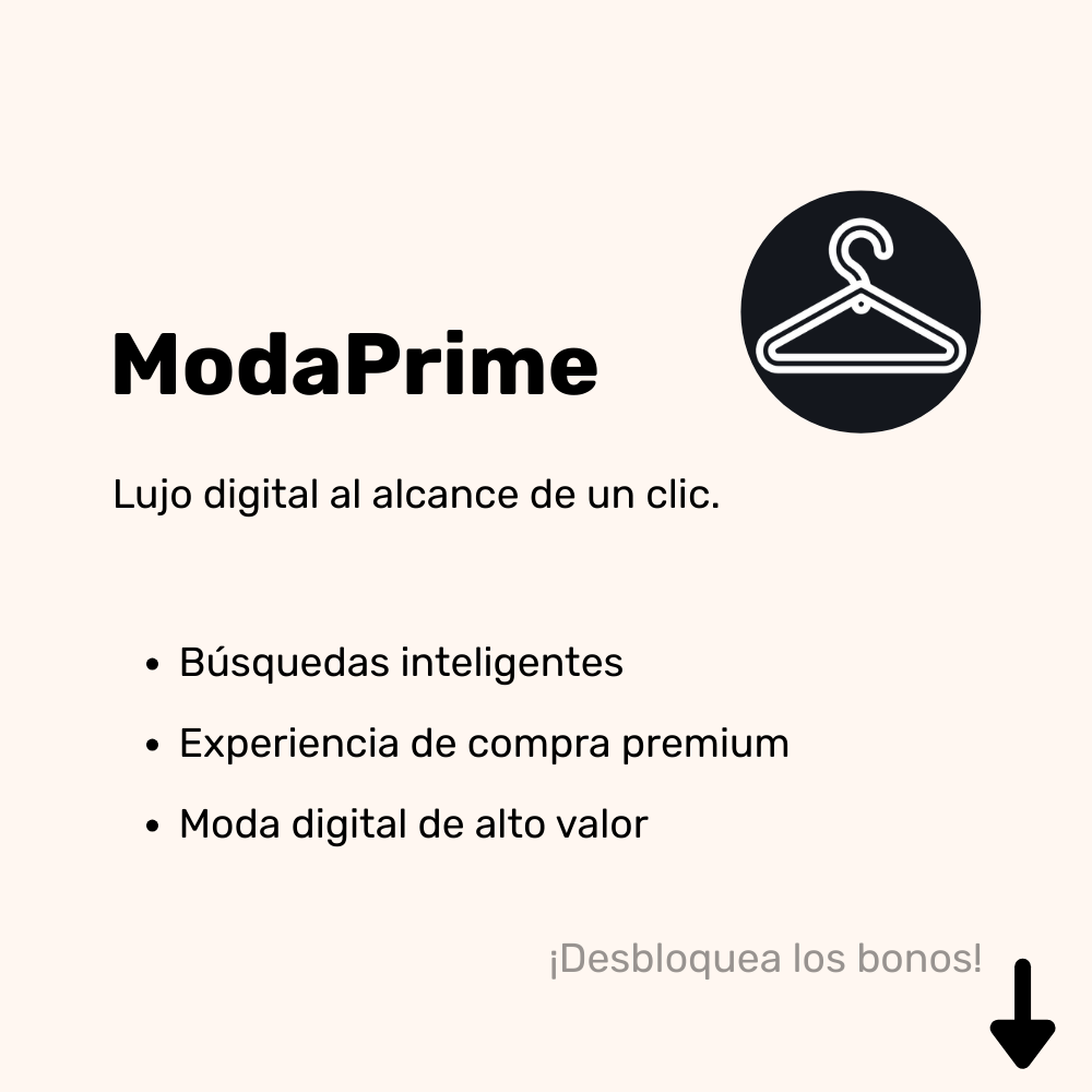 Con ModaPrime, cada visita se convierte en una experiencia memorable, donde la sofisticación, la eficiencia y la calidad se unen para impulsar la fidelización y el crecimiento de tu negocio digital.